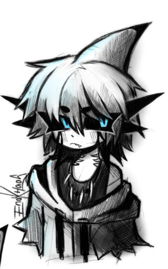 WHO'S KHAOS?Khaos is an oc i made in 2020, since i create them i use it for represent myself in social media and my friend's group.Their pronouns are they/them, is a moth/cat, inspired in endermans and "The End" from minecraft. Their hoodie come to live when is off Khaos and absorb Khaos powers to prevent they make a mess in somewere.They dont usually talk, is shy and get paniked easily, their lore is a mistery but one day everyone will know about this fella.